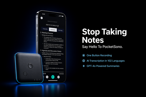 PocketSono AI Voice Recorder — Record, Transcribe & Summarize Meetings Automatically with GPT-4o